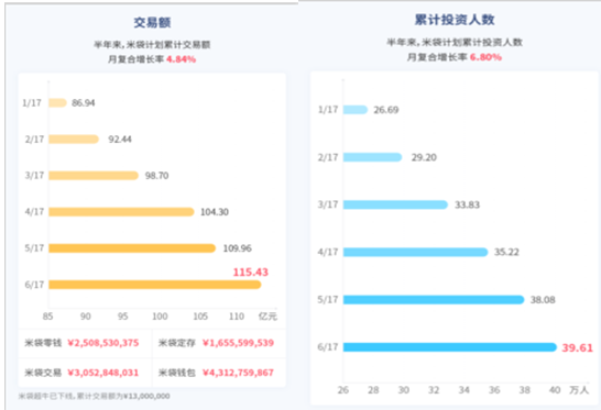 7月5日,互联网资产配置平台米袋计划发布2017度6月份运营报告。报告显示,米袋计划累计交易总额已突破115亿,与上一年同比增长105%;累计投资人数已接近40万人,与上一年同比增长126%,共为投资者赚取利益超过1亿元。本月继续保持稳健安全运营,无坏账记录。米袋计划在每月初,发布前一月运营报告,及时向投资者、社会公众公布平台的每月运营状况,有助于公众和投资人了解产品运营的动态信息。