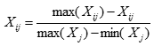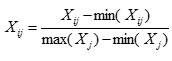 其中Xij表示一国第i维度第j项指标标准化后量值,max(Xij)为i维度第j项指标最大样本值,max(Xij)为i维度第j项指标最小样本值,Xij为某城市第i维度第j项指标原始值。