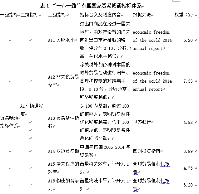 关键词:一带一路;贸易畅通;中国-东盟;指标体系