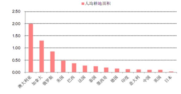 我国土地资源丰富,其中,耕地约 20 亿亩,约占全国总面积的 14.3%,但人均占有量少。世界人均耕地 0.37公顷,而我国人均仅 0.1 公顷。发达国家 1 公顷耕地负担 1.8 人,发展中国家负担 4 人,我国则需负担 8 人,其压力之大可见一斑,土地的人口压力逐年增加。